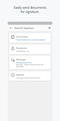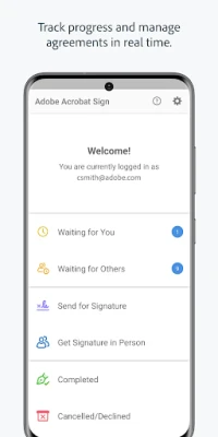 This app is a mobile companion for the Adobe Acrobat Sign e-signature service. With it, you can e-sign documents and forms, send them to others for e-signature, track your documents and get signatures instantly with in-person signing.