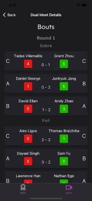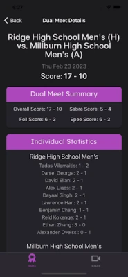 Available now: - Real-time bout scores & cards - Log of touches and penalties - Gesture based controls - High School teams and dual meets